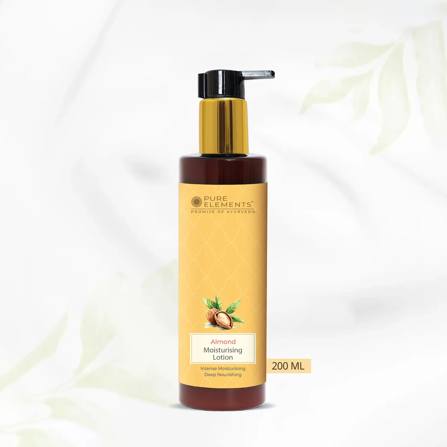 Pure Elements Almond Moisturizing Lotion is a luxurious blend of precious oils and butters. This nourishing lotion is made with cold pressed pure oils of Almond, Olive and Sesame seeds. Blended with Shea Butter, Vit E, Wheat germ Oil and highly nutritious Kokum Butter, this lotion deeply hydrates dry, dehydrated and rough skin. Corrects skin’s natural moisture balance and restores skin elasticity.