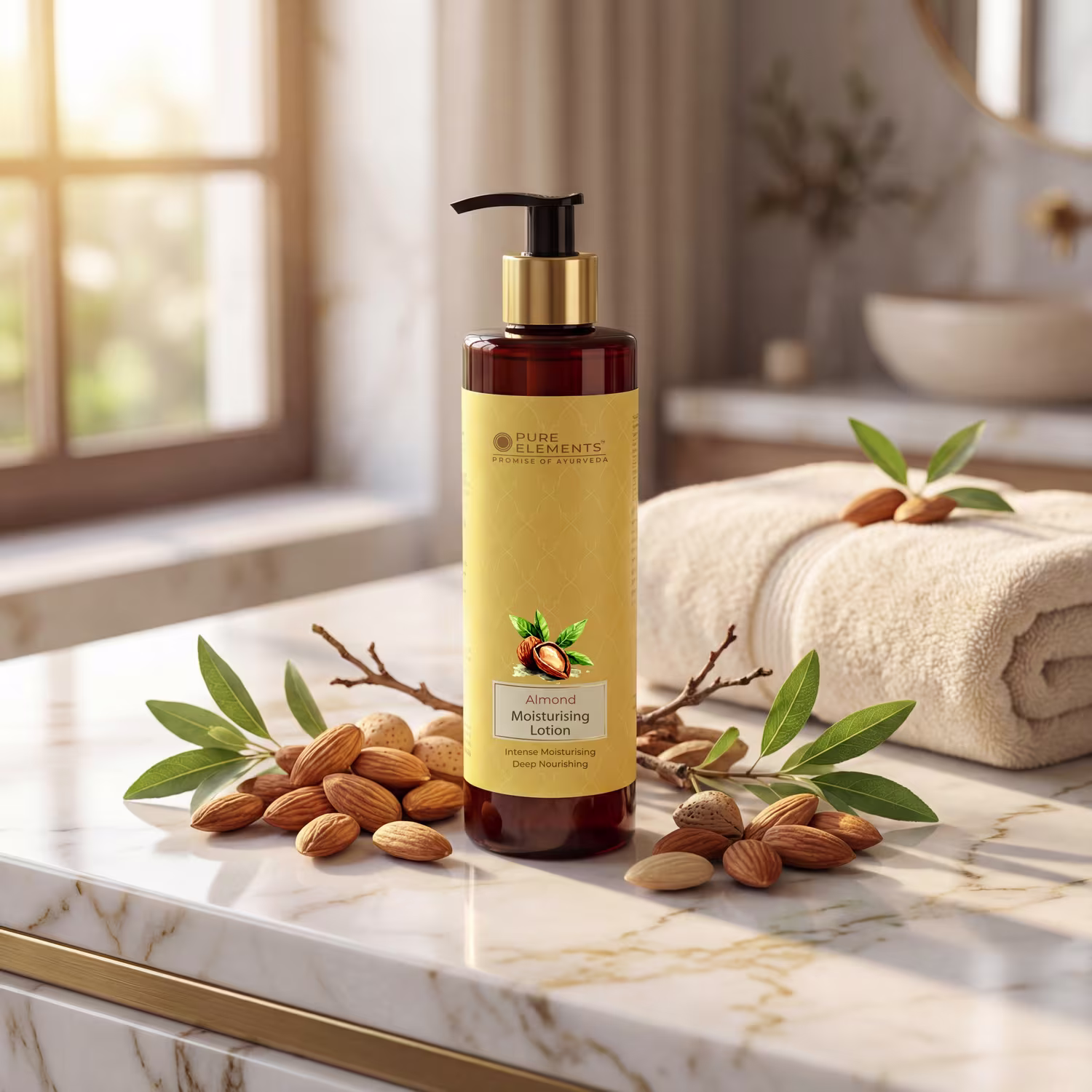 Pure Elements Almond Moisturizing Lotion is a luxurious blend of precious oils and butters. This nourishing lotion is made with cold pressed pure oils of Almond, Olive and Sesame seeds. Blended with Shea Butter, Vit E, Wheat germ Oil and highly nutritious Kokum Butter, this lotion deeply hydrates dry, dehydrated and rough skin. Corrects skin’s natural moisture balance and restores skin elasticity.