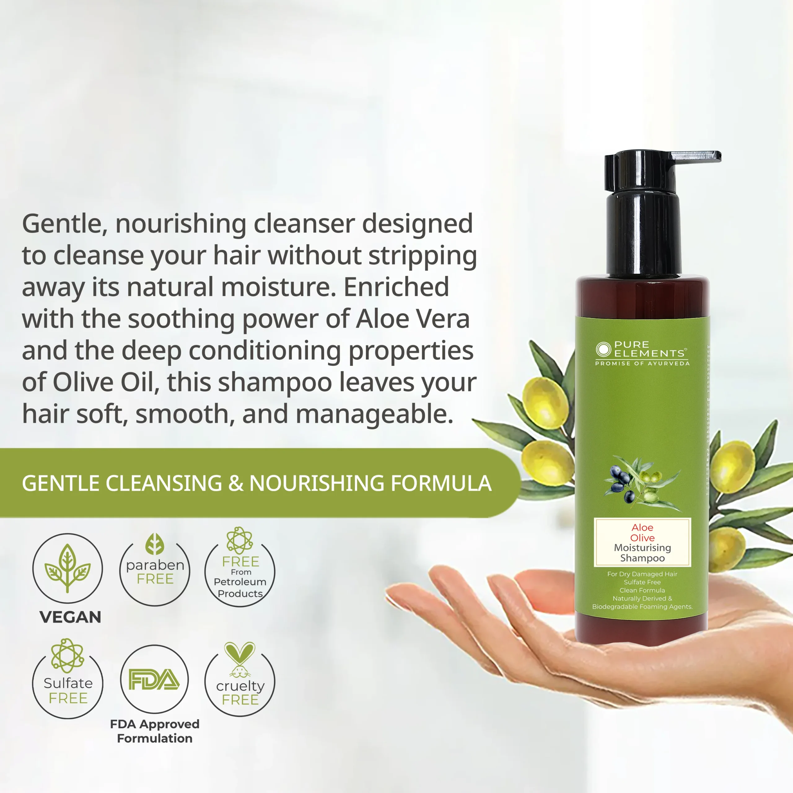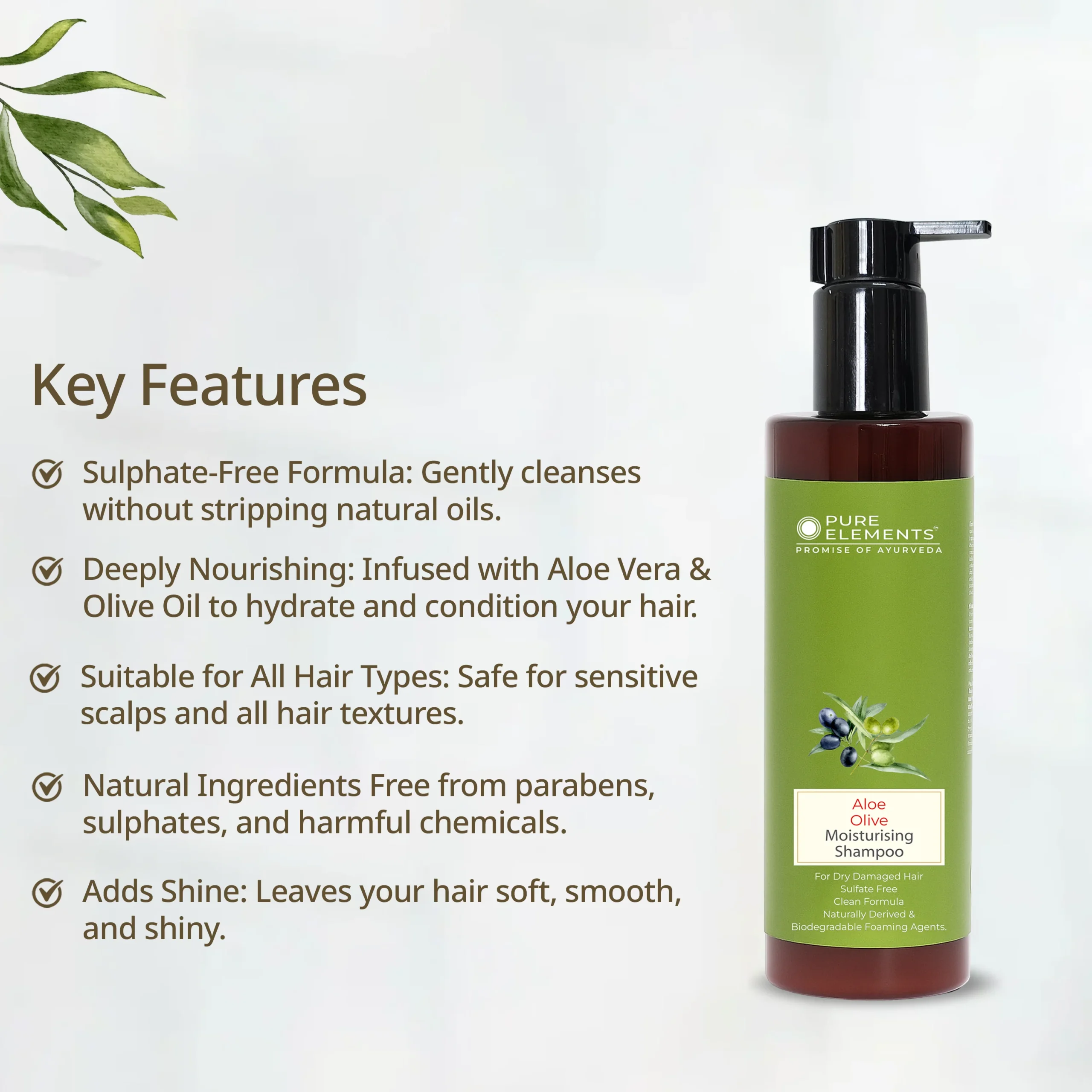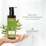 Pure Elements – Aloe Olive Shampoo is an extremely mild scalp& hair cleanser formulated with naturally derived foaming agents. This shampoo is infused with Botanical Extracts, Proteins & Vitamins. It gently cleanses, repairs and moisturizes dry and damaged hair to make it healthier and softer. Carefully chosen ingredients like Aloe Vera, Olive give optimum moisture and hydration to hair shaft while Wheat Proteins and Vit B5 make it stronger. This shampoo made with natural ingredients is perfectly suitable for colored and chemically treated hair. It delays fading out of color and retains its depth for longer period