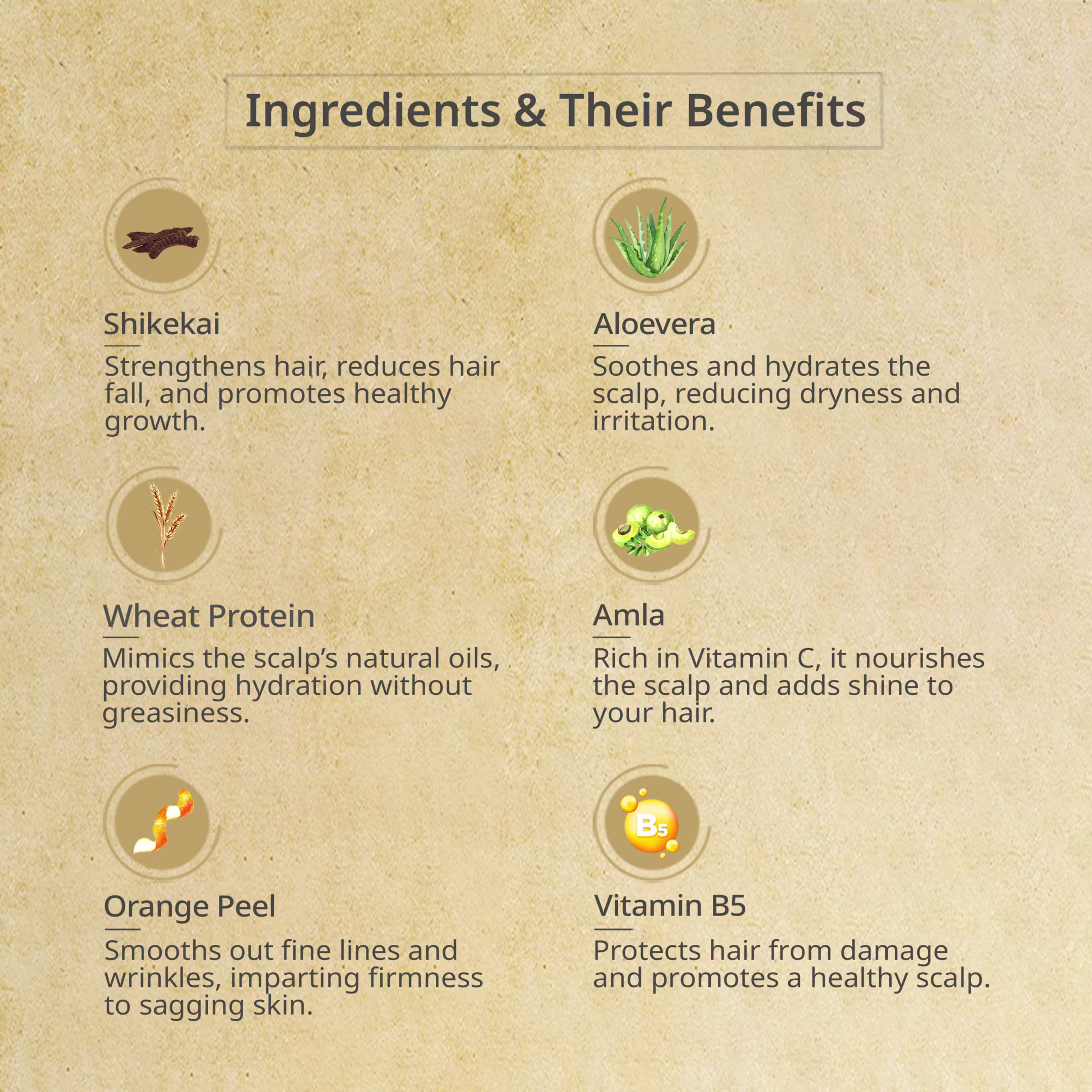 CONTAINS – Shikekai Decoction, Aloe Vera Juice, Amla Extract, Bhringraj Extract, Onion Extract, Nagarmotha Extract, Reetha.