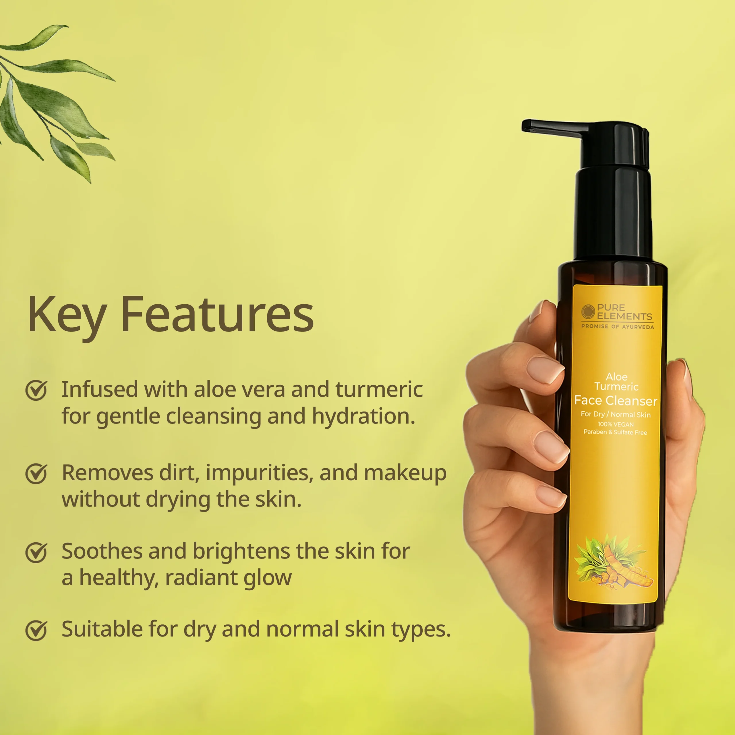 Elevate your skincare ritual with Pure Elements Aloe Turmeric Face Cleanser—a luxurious, sulfate-free cleanser crafted from pure Aloe Vera gel and time-honored Ayurvedic botanicals. This gentle, low-foaming formula purifies without stripping moisture, leaving your skin soft, radiant, and balanced. Infused with turmeric, licorice, manjistha, and cucumber, it detoxifies, soothes, and brightens naturally. Ideal for all skin types, especially sensitive and dull skin, this cleanser transforms your daily routine into a moment of mindful indulgence.