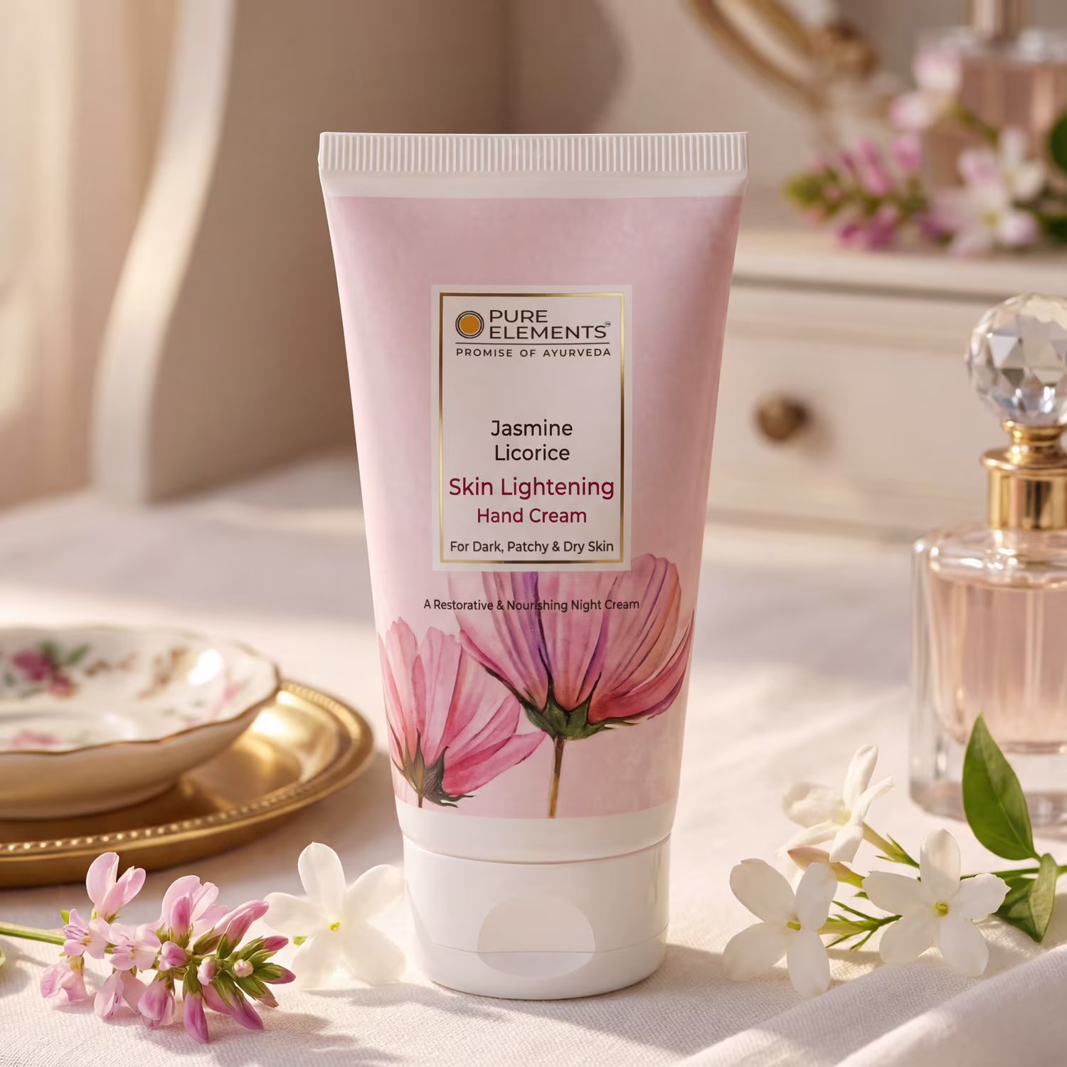 This ultra-rich, beautifully fragrant cream is a treat to dry, dehydrated and patchy skin of the hands. Plant based ingredients reduce the appearance of dark spots and discoloration to make skin even toned. A potent blend of natural oils and butters deeply moisturise & hydrate the skin. This restorative and aromatic night cream visibly improves the texture and tone of your hands while you sleep.
