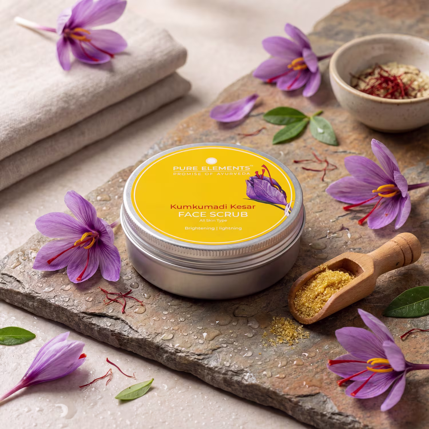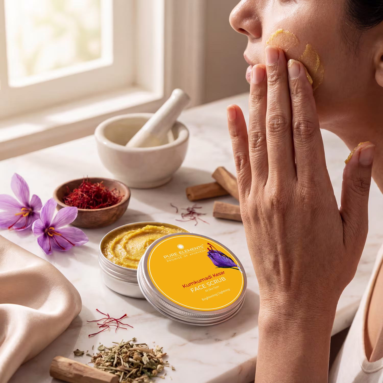 Glow like royalty — saffron-infused exfoliation for radiant, silky skin.