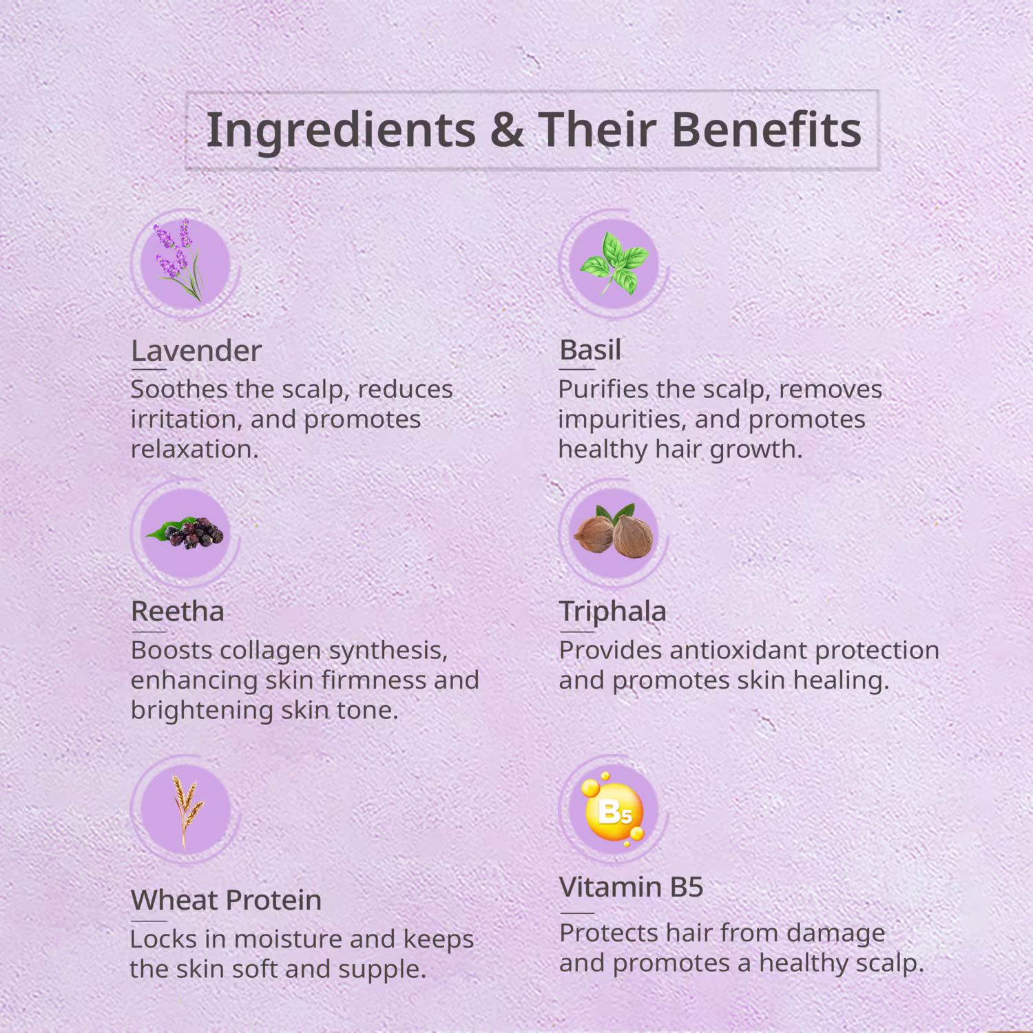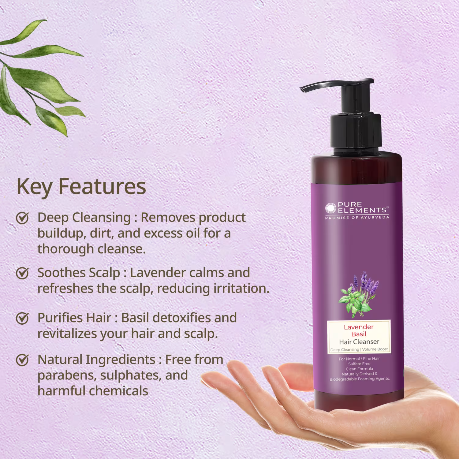 Lavender Basil Hair Cleanser is based on traditional wisdom coupled with modern science. A deep cleansing shampoo infused with precious Ayurvedic Herbs, removes oil and accumulated dirt from scalp & hair. Enriched with moisturising Coconut Derivatives, Proteins & Panthenol, it provides optimum nourishment to hair shaft. Maintains volume of fine / soft hair while protecting it from color fade, daily stresses, and future damage. A perfect shampoo for Clean, Soft & Vibrant hair!