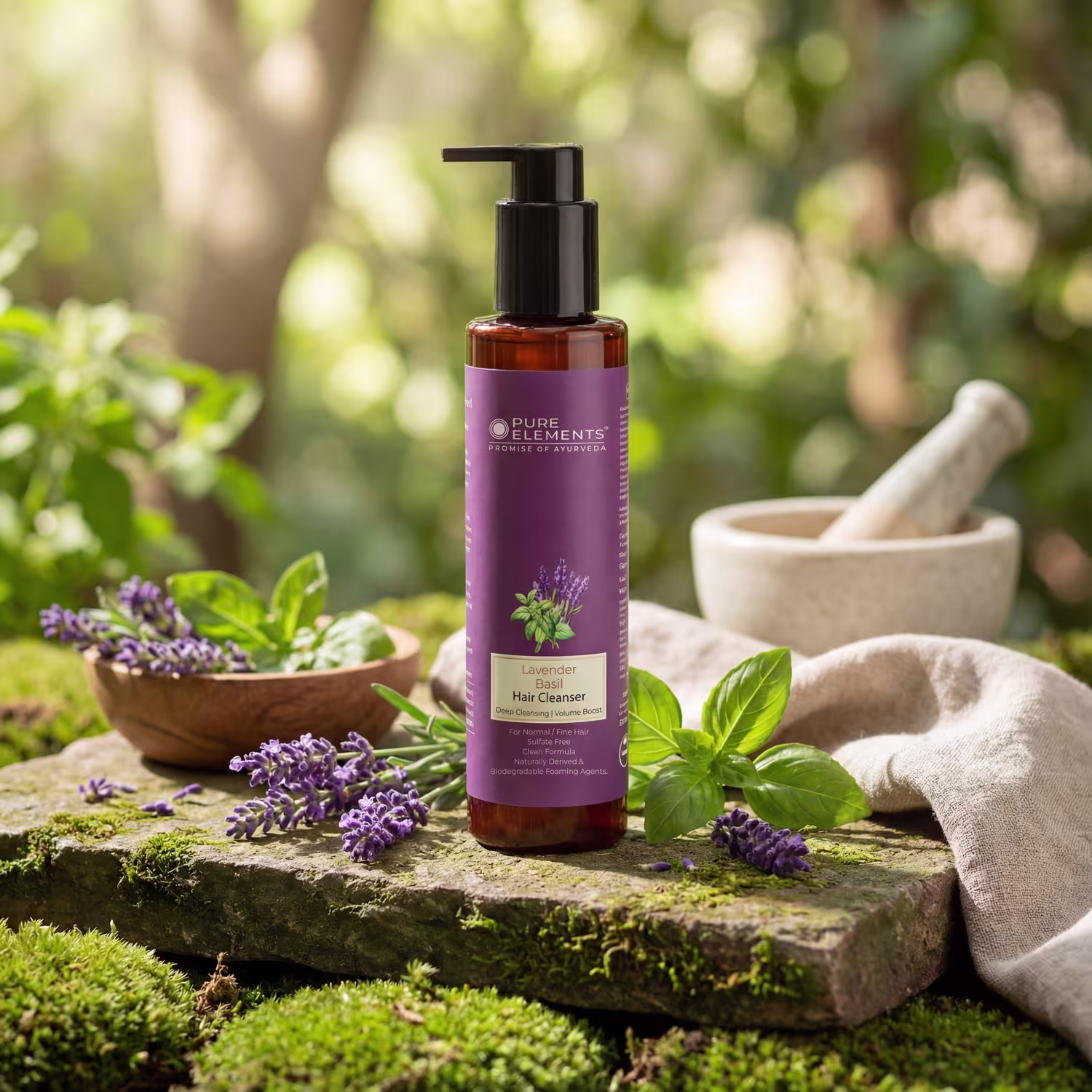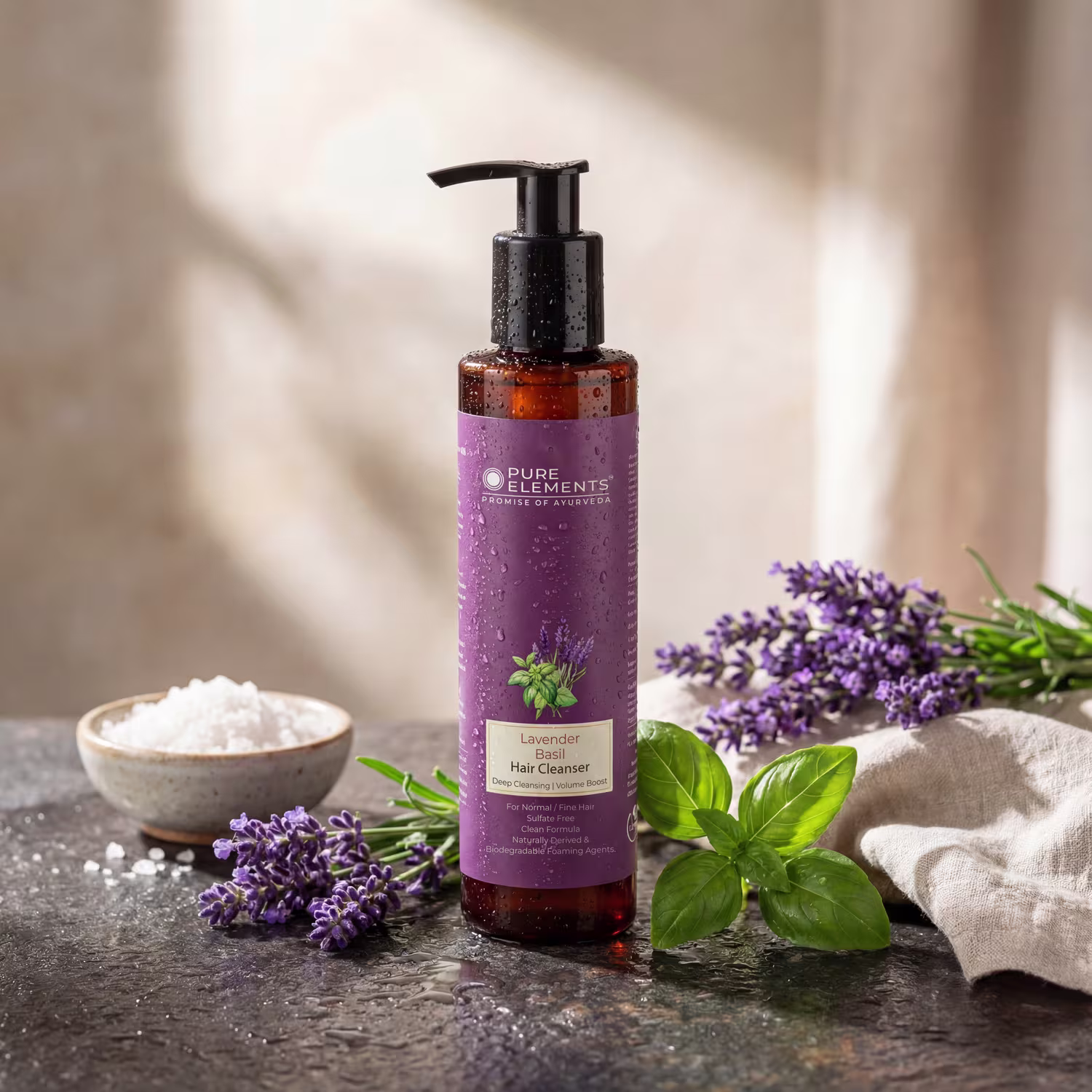 Lavender Basil Hair Cleanser is based on traditional wisdom coupled with modern science. A deep cleansing shampoo infused with precious Ayurvedic Herbs, removes oil and accumulated dirt from scalp & hair. Enriched with moisturising Coconut Derivatives, Proteins & Panthenol, it provides optimum nourishment to hair shaft. Maintains volume of fine / soft hair while protecting it from color fade, daily stresses, and future damage. A perfect shampoo for Clean, Soft & Vibrant hair!