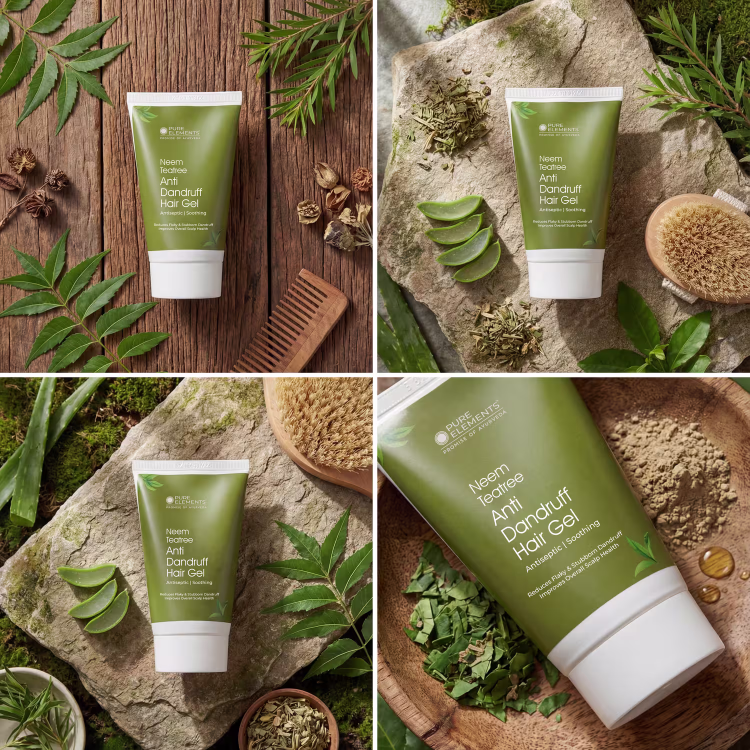 Pure Elements – Neem Teatree Anti Dandruff Hair Gel is a combination of potent herbs and natural essential oils for an effective treatment of dandruff. Botanical extracts of Neem Leaves and Calendula Flowers have a strong anti dandruff action. Aloe Vera Juice soothes irritated scalp and reduces flaking. Pure Essential Oils of Teatree and Rosemary act as an effective and natural anti fungal agents. A perfect treatment of dandruff associated with oily and itchy scalp. Paraben free.