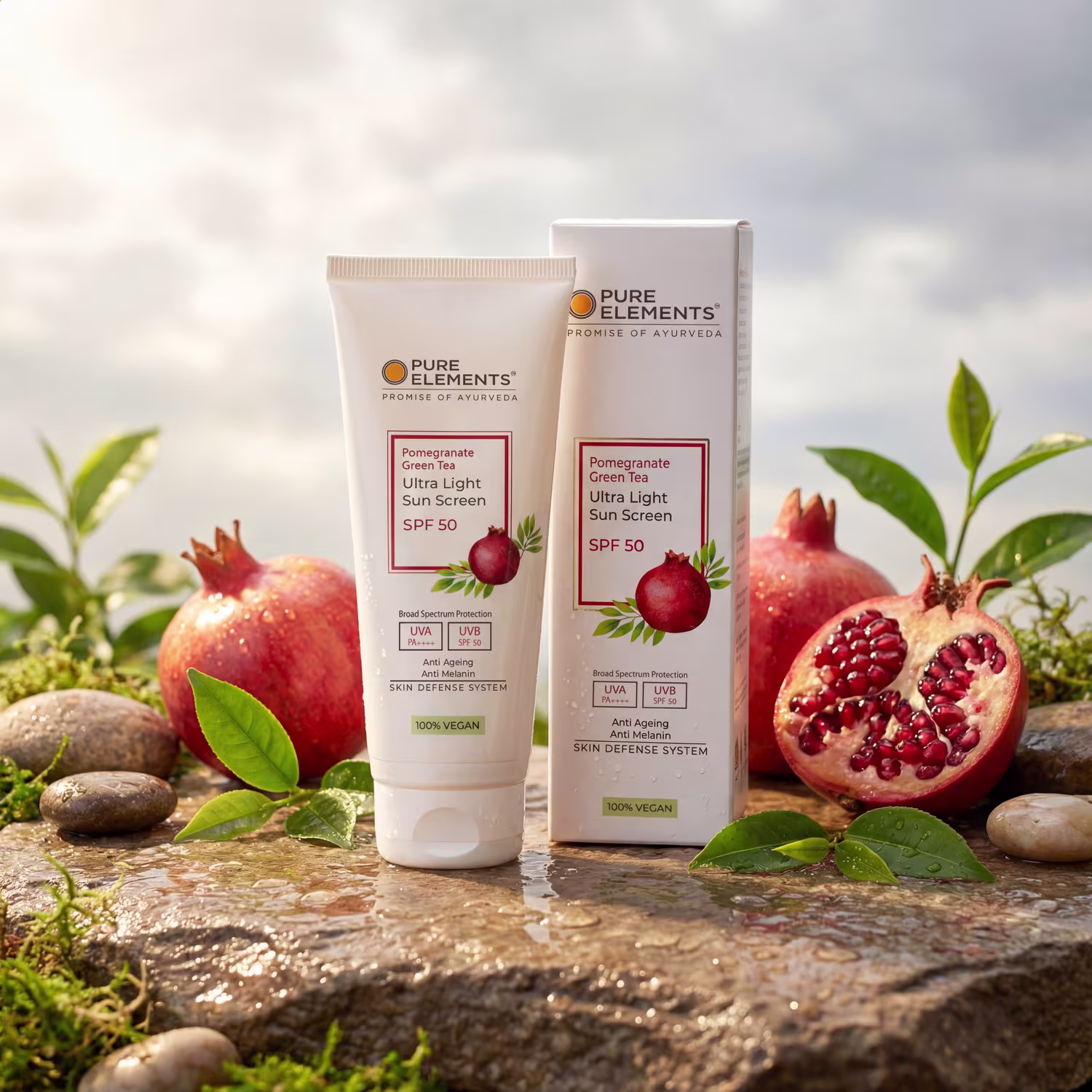 Upgrade Your Sun Protection: Shield your skin from harmful UV rays with our Pomegranate Green Tea Ultralight Sunscreen SPF 50!